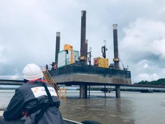 Les premiers travaux de reconnaissances géophysique et géotechnique ont commencé en rivière de Cayenne. Il s’agit d’étude de sol pour dimensionner précisément les fondations. « Il s’agit d’une étape importante pour le lancement des travaux », déclare Stanislas Alfonsi, Secrétaire général adjoint à la préfecture de Guyane. Une entreprise est chargée d’étudier la qualité du sol sur lequel vont reposer les piliers du pont.