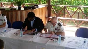 Signature de convention entre le Général Didier Looten, commandant des Forces Armées de Guyane et Alain Ayong Le Kama, recteur de Guyane. (Photo : N.Mézil)