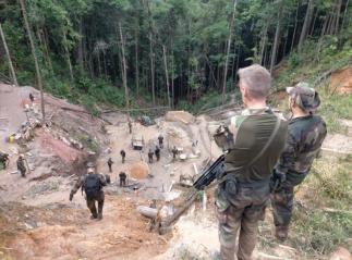 60 gendarmes provenant de différentes unités du commandement de la gendarmerie de Guyane (Centre de Conduite des Opérations Harpie, Escadrons de Gendarmerie Mobile, Antenne GIGN, Brigade Territoriale de Cacao et unités de Police Judicaire), ont été déployés en forêt dès le lever du jour pour mettre fin à l’activité de plusieurs sites illégaux. 6 fonctionnaires de la Police Aux Frontières sont aussi venus en appui du dispositif mis en place.